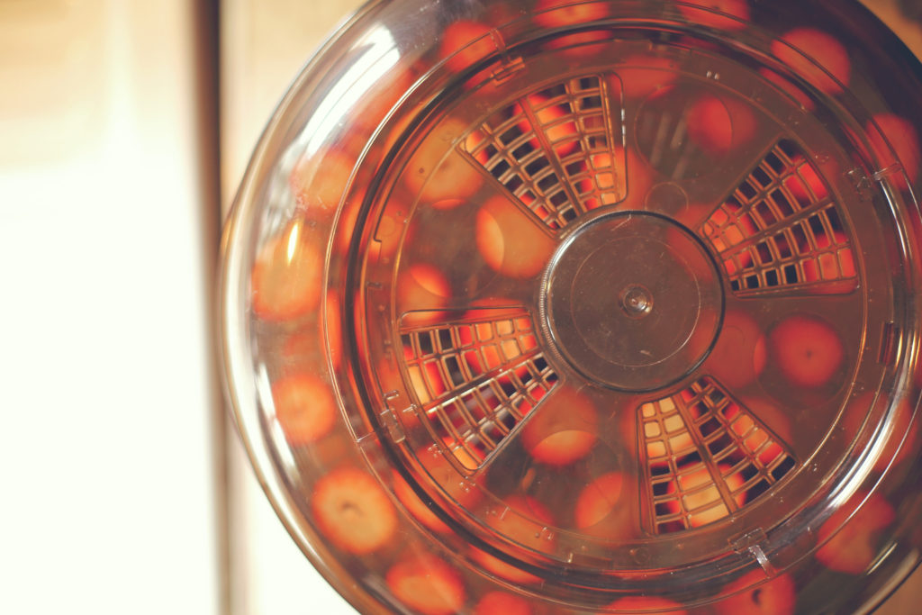 My dehydrator is a smoke-colored Ronco brand, circa 1993, sold in one of those fabulous early 90s infomercials. The infomercial even included a shout out for that fabulous spray on hair for bald spots. Basically spray paint for your head. My father-in-law gave me this dehydrator years ago, and with not really having much experience with it I just packed it away.