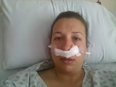 monday morning i went in for my sinus surgery…they removed polyps from both sinuses and my nasal passages, did a caldwell luc, a nerve dissection, flushed my sinuses and then packed them with rhino rockets…it was to be outpatient surgery but they decided to keep me overnight because of the amount of pain/bleeding i had…fine with me, at least they hooked me up with some good drugs in my IV while i was there…i came home yesterday afternoon and my love has been taking care of me ever since then…