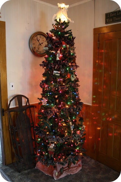 and this is a pic of our christmas tree this year…the sled beside it was my dads when he was a child. i just love having things like that, things that can be passed down…hopefully my children will appreciate these “things” as much as i do…