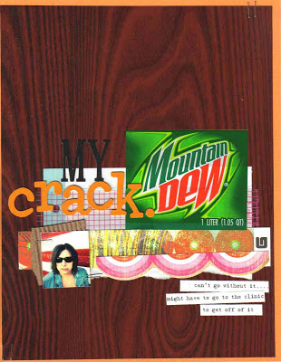 i am CRAZY excited to have a long weekend…and by long i mean MY WEEKEND STARTS TOMORROW!!!! oh yes, i took two extra days off…sweet! i might do a little camping with the fam…hopefully LOTS of scrapping…and saturday we have to go pick my mom up from pittsburgh (with some shopping at the outlets!)…good times!a new challenge is up at the guttergirlz challenge blog…and it ROCKS! THE PROMPT: I’m a JUNKIE THE SONG: Shoes by Liam Sullivan (please don’t feel limited by the song, your creation doesn’t have to have ANYTHING to do with shoes) THE PRODUCT: Packaging, wrappers, or logo of your addiction… here is my take on it….